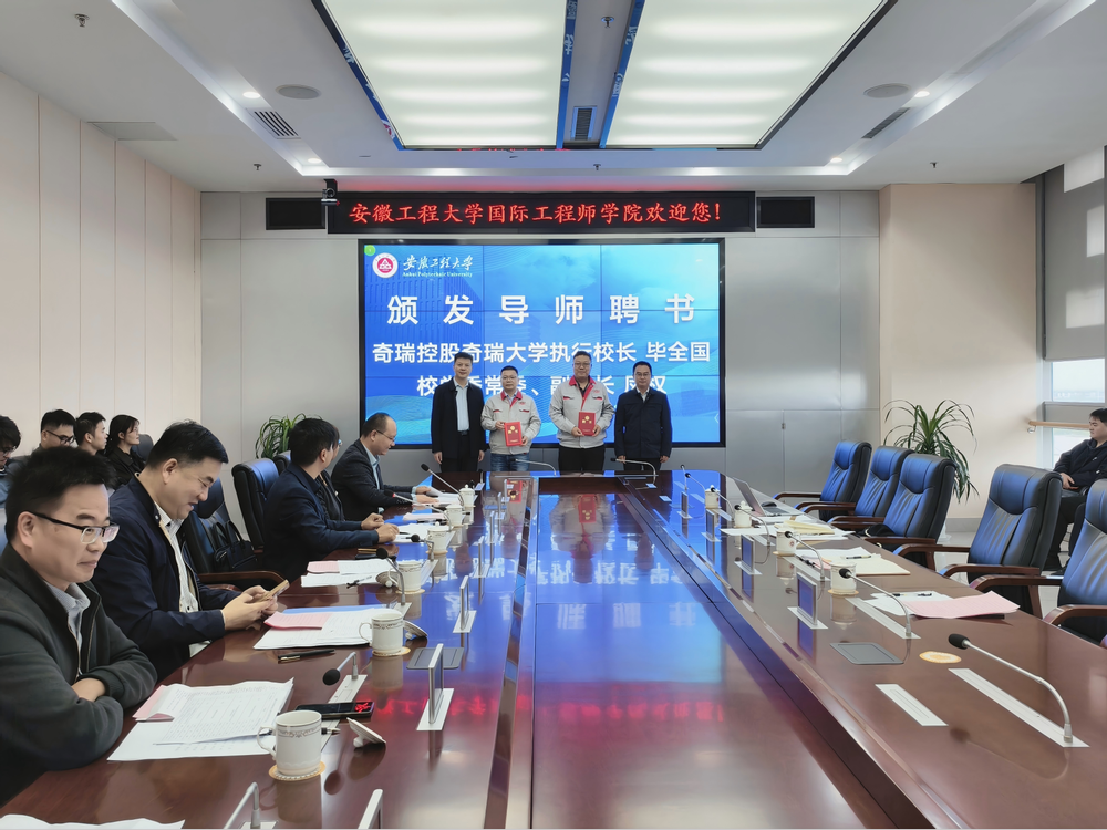 仪式上,凤权宣布奇瑞学院第二期研究生班正式开班,毕全国与凤权共同向研究生代表授予“奇瑞学院研究生班旗”,并为奇瑞学院研究生联合培养导师颁发聘书。